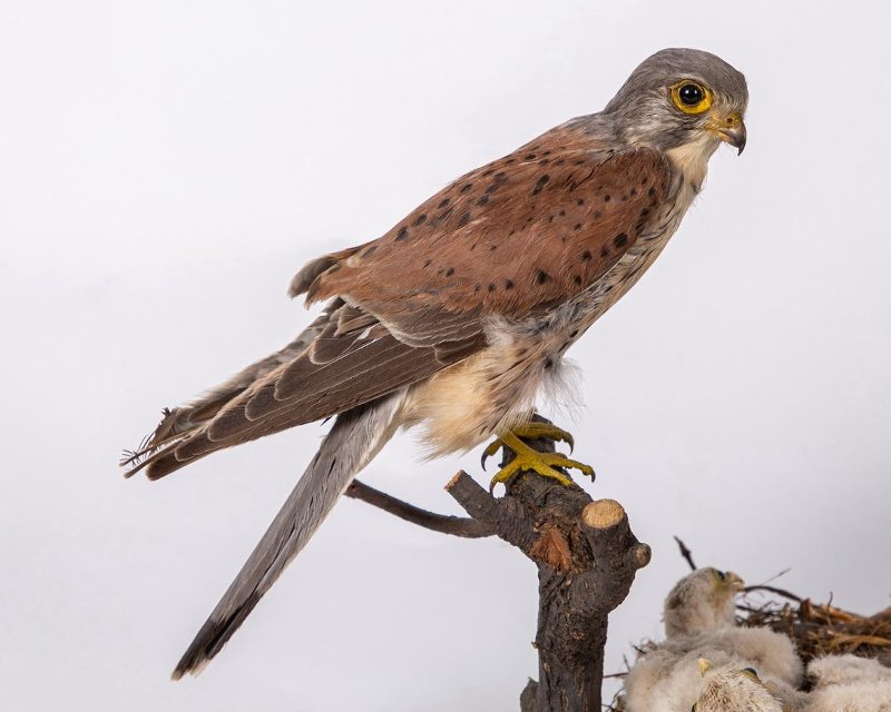 Чучело в биогруппе. Обыкновенная пустельга. Falco tinnunculus L.,1758. Классификация: Хордовые Chordata, Позвоночные Vertebrata, Птицы Aves, Соколообразные Falconiformes, Соколиные Falconidae, Обыкновенная пустельга Falco tinnunculus L.,1758