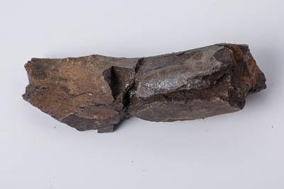 Фрагмент кости ихтиозавра. Склеен из нескольких кусков. Кости черные хрупкие, частично реставрированные