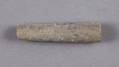 Фрагмент ростра белемнита. Ростр скорее циллиндро-конической, чем веретёновидной формы. Альвеола узкая и сравнительно не глубокая, очень тонкостенная. Закрыта пробкой из вмещающей породы.Апикальная часть ростра и фрагмакон не сохранились. Брюшной борозды нет. Общая окраска - грязно-серая.
