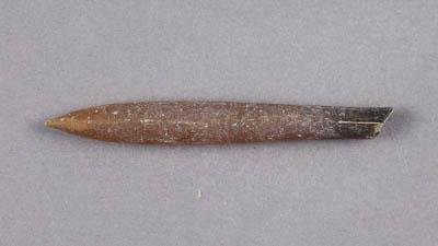 Фрагмент ростра крупного белемнита. Хвостовой терминальный шипик и фрагмакон не сохранились.