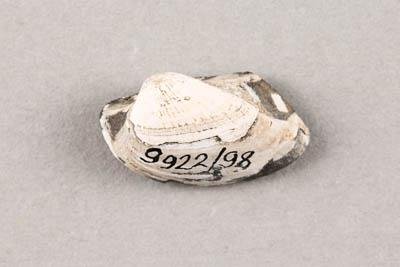 Створка раковины двустворчатого моллюска на субстрате. Раковина удлиненная, преимущественно трапециевидная, несимметричная, почти равностворчатая. с макушками, более или менее сдвинутыми вперед. Зияющая, килеватая. Скульптура - сочетание радиальных ребер с концентрическими струйками нарастания. Замочный край прямой или слабо изогнутый, с многочисленными вертикальными или слабо скошенными зубами. Окраска - светло-серая, почти белая.