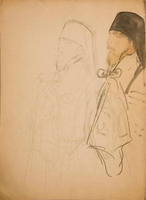 Вертикальный формат. Поясные наброски в профиль. На обороте - набросок задних конских ног. Прорисовка мускулатуры.