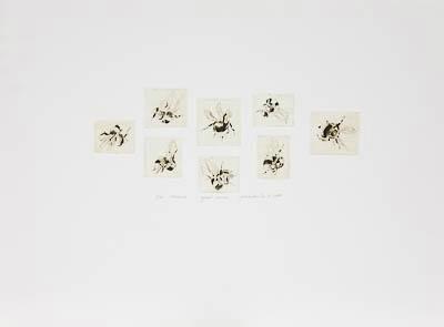 Горизонтальный формат. На одном листе - 8 оттисков с изображениями шмелей в разных позах. Оттиски расположены симметрично.