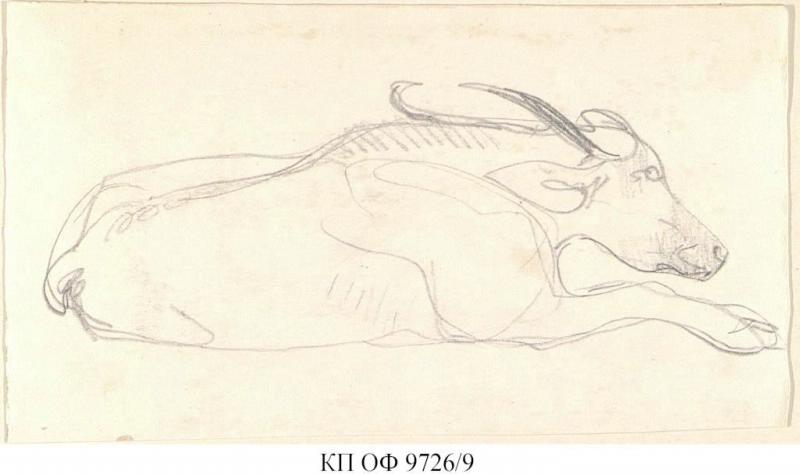 Набросок лежащей антилопы. Рисунок