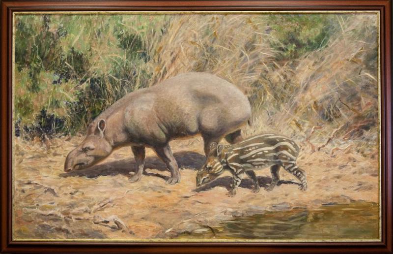 Тапир с детенышем. Картина