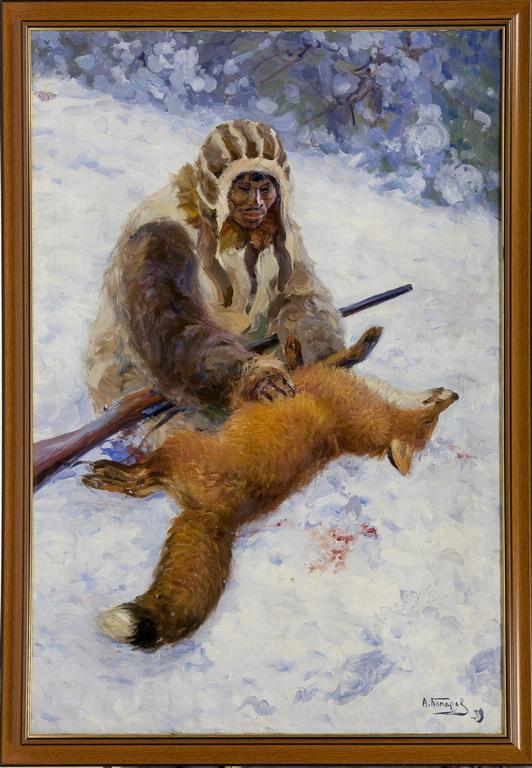 Камчадал-охотник с лисицей. [Охотник Камчатки с лисицей]. Картина