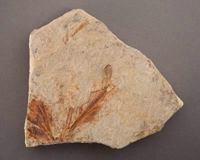 Листовая пластика (фрагмент) на субстрате. Примитивный гинкгофит. Psygmophyllum intermedius Naug