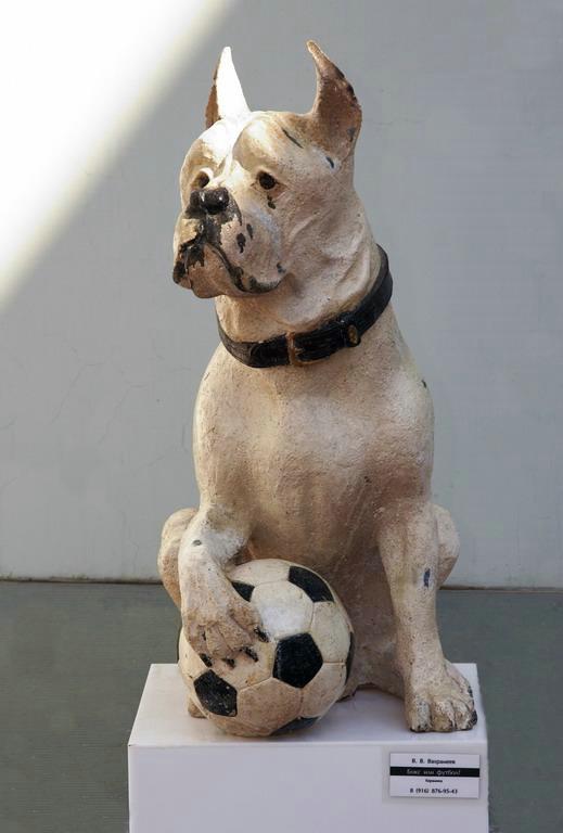 Бокс или футбол. (Собака породы боксер с футбольным мячом). Скульптура