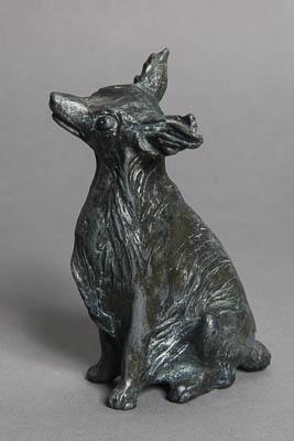 Собака сидя. [Чи-хуа-хуа или длинношерстный той-терьер]. Скульптура