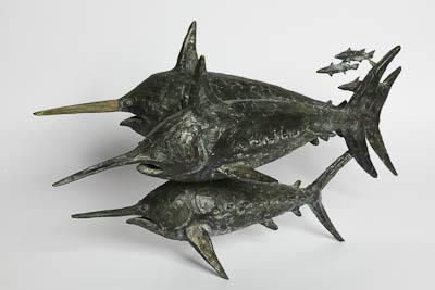 Рыба меч [3 рыбы-меч и 3 маленькие рыбы]. Скульптура