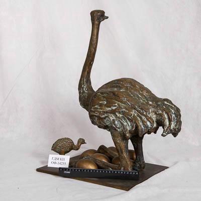 Страусы. (Страус с яйцами и страусенком). Скульптура