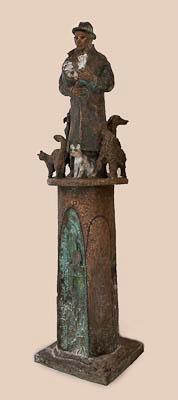 Верхняя часть разъемной скульптуры представляет собой скульптурное изображение стоящего пожилого мужчины (М.М. Петрухина) окруженного животными, на круглом постаменте. Мужчина одет в пальто и шляпу, его усатое лицо покрыто морщинами. За пазухой он держит трех белых щенят. На правом плече у него сидит птичка с поднятыми крыльями. У ног человека справа стоит на задних лапах собака, хвост которой завивается колечком. Рядом стоит кошка, выгнув спину и подняв вверх хвост. Прямо перед мужчиной сидит белая собака со стоячими ушами. Слева стоит лохматая собака, смотрящая вверх. Сзади, за спиной человека, сидит большая собака с висячими ушами, напоминающая борзую.