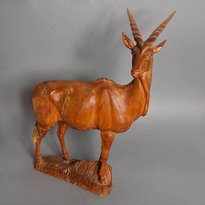 Скульптурное изображение стоящего самца антилопы канны на подножии. Животное стоит, повернув голову с длинными прямыми витыми рогами направо. Правая передняя нога чуть впереди, правая задняя - отставлена назад. Конец хвоста с кисточкой касается скакательного сустава правой задней ноги. Подножие, выполненное в виде земли, покрытой травой, составляет со скульптурой единое целое.