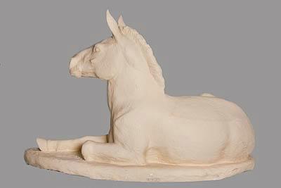 Скульптурное изображение лежащего кулана на подножии. Правая передняя нога вытянута вперед, остальные поджаты под туловище. Голова поднята вверх и слегка повернута вправо, глаза открыты, уши стоят вертикально. Скульптура составляет с подножием одно целое, тонирована в светлый желтовато-кремовый цвет.