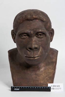 Скульптурная реконструкция внешнего облика архантропа .В его лицевой части есть некоторые примитивные, австралопитековые особенности. Объем мозговой полости черепа составляет около 850 куб. см., лицевая часть более массивная, с сильно выдвинутыми вперед челюстями,скошенный неразвитый подбородок. Небольшой, уходящий назад лоб,отчетливо выражен надглазничный валик, переносье развито слабо, нос широкий, плоский, свод черепа низкий, шея мускулистая короткая.