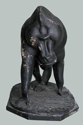 Скульптурное изображение идущего взрослого самца мандрила на восьмиугольном в плане подножии. Правая передняя рука обезьяны вынесена вперед, левая отставлена назад. Левая нога вынесена вперед, правая - стоит за нею и опирается только на половину стопы. Голова опущена, пасть чуть приоткрыта по краям. Хвост поднят вверх. Голова, плечи и спина мандрила покрыта пышной гривой. Скульптура тонирована в черный цвет.