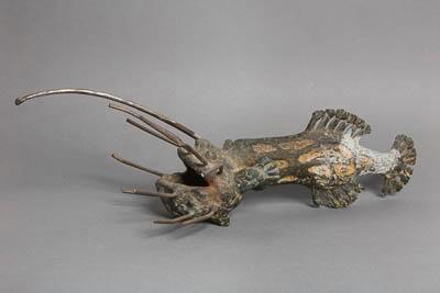 Скульптурное изображение удильщика без подставки. Голова округлой формы, отделена от туловища подобием шеи; по бокам головы - два плавника, похожие на лапы; нижняя челюсть немного больше верхней, на ней 5 длинных отростков. Глаза направлены вверх, выступающие. От верхней челюсти идут в стороны и вверх 6 отростков и более длинное удило в центре, направленное вперед и вверх. Пасть раскрыта. Передняя часть туловища узкая, задняя чуть расширена, на ней сверху 6 отростков - плавников, снизу - 5; на хвостовом плавнике 8 отростков.