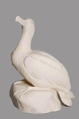 Скульптурное изображение сидящего альбатроса на подножии в виде камня. Птица сидит, сложив крылья и прижав их к туловищу. Голова поднята вверх и повернута влево, глаза открыты. Лапки с перепонками лежат на подножии, составляющем единое целое со скульптурой. Скульптура тонирована в светлый желтовато-кремовый цвет.