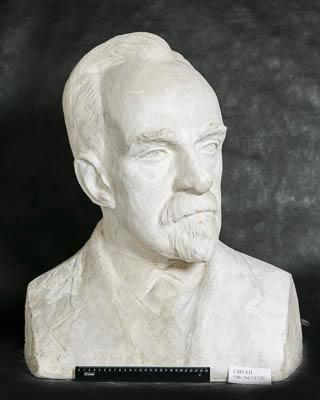 Бюст Петра Петровича Сушкина (1868-1928 гг.) в зрелом возрасте. Сушкин изображен погрудно, голова повернута в три четверти налево, бородка клинышком с усами обрамляет задумчивое, сосредоточенное лицо. Лоб высокий, волосы зачесаны назад, брови чуть нахмурены, глаза смотрят прямо. Изображен в одежде - рубашке с отложным воротником, а также жилете и пиджаке. Плечи и спина отсечены прямыми плоскостями.