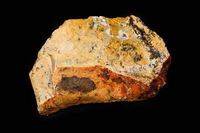 Отщеп. Кремень жёлтого цвета, с многочисленными чёрными и рыжими включениями в виде мелких пятен. Сохранился фрагмент розовой "корки".