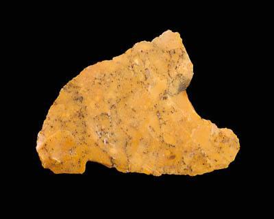 Отщеп. Кремень рыжеватого цвета с сеточкой из чёрных включений.