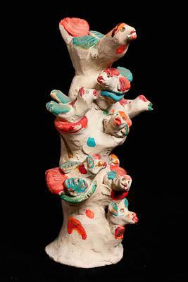 Дерево (Древо жизни). Это символ творческих сил природы, незыблемость миропорядка. Поклонение ему бесспорно связано с чувством причастности дерева началу мира. На ветвях сказочного «Древа жизни» свили свои гнёзда диковинные птицы. С ними всегда связывалось представление об особой одухотворённости, способности преодолеть тяжесть земного бытия, перелететь в иной умный и счастливый мир. Дерево - это и дом, и храм, и тепло, и последнее пристанище человека. Сюжет « дерево» чрезвычайно распространён в народном искусстве. Он часто встречается в народной вышивке, в народной игрушке. В хлудневской игрушке этот сюжет существует во множестве вариантов: с птицами и гнёздами, с барыней, с белками и разными животными у всех народных мастериц. По верованиям наших предков, могуществу « дерева» не было предела: Оно могло послать дождь, вызвать солнце, способствовать размножению стада, хорошему урожаю. « Дерево» хлудневские мастерицы лепят давно, это один из любимых сюжетов.
