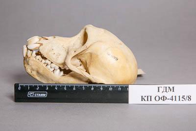 Костный материал. Череп павиана. Papio sp. Классификация: Хордовые Chordata, Позвоночные Vertebrata, Млекопитающие Mammalia, Приматы Primates, Мартышковые Cercopithecidae, Cercopithecinae, Павиан Papio sp.