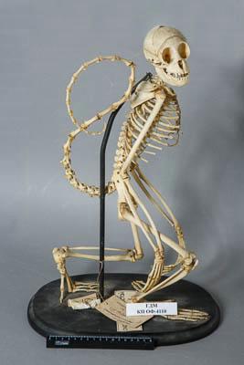 Костный материал. Скелет цепкохвостой обезьяны (коаты). Ateles sp. Классификация: Хордовые Chordata, Позвоночные Vertebrata, Млекопитающие Mammalia, Приматы Primates, Паукообразные Atelidae, Atelinae, Цепкохвостая обезьяна (коата) Ateles sp.