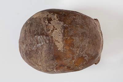 Череп гётегенизирован и приобрёл коричневатую окраску. Возраст: ad