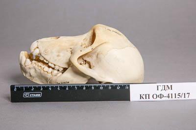 Костный материал. Череп павиана. Papio sp. Классификация: Хордовые Chordata, Позвоночные Vertebrata, Млекопитающие Mammalia, Приматы Primates, Мартышковые Cercopithecidae, Cercopithecinae, Павиан Papio sp.
