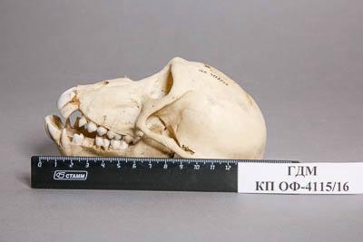 Костный материал. Череп павиана. Papio sp. Классификация: Хордовые Chordata, Позвоночные Vertebrata, Млекопитающие Mammalia, Приматы Primates, Мартышковые Cercopithecidae, Cercopithecinae, Павиан Papio sp.