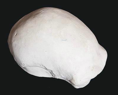 Гипсовый нетонированный слепок черепной крышки неандертальца.Характерные черты - развитый надглазничный валик и покатый лоб.