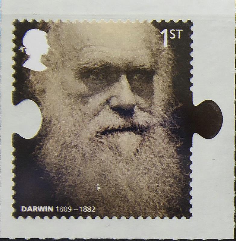 Марка с зубцами; с клеем; на белой бумаге; выполнена в виде фрагмента пазла; тираж не известен. На марке изображен портрет Ч. Дарвина.