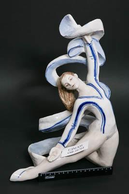 Портрет чемпионки мира по художественной гимнастике Ирины Дерюгиной, показанной в остродинамичной позе упражнения с лентами.