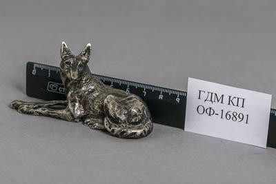 Скульптурное изображение лежащей собаки породы немецкая овчарка без подножия.