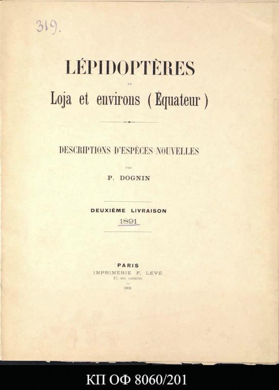 Книга. Lepidopteres de Loja et environs (Equater) et Descriptions d'Especes Nouvelles