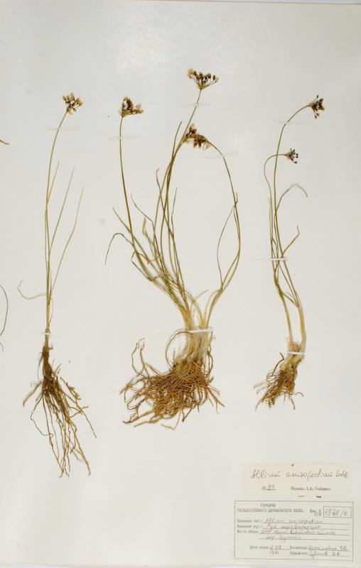 Гербарий. Лук неравноногий. Allium anisopodium Ledeb. Классификация: Растения Plantae seu Vegetabilia, Растения, Alliaceae, Лук неравноногий Allium anisopodium Ledeb.