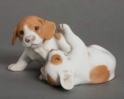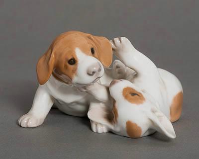 Два щенка с коричневыми пятнами [играющие]. Скульптура