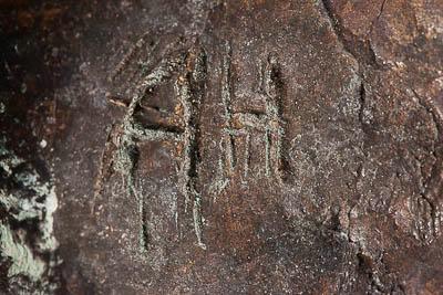 Скульптурное изображение двух лебедей на подножии в виде кочки. Птицы обращены голвами друг к другу, одна из них стоит, подняв вверх С-образно изогнутую шею, взгляд направлен на партнера. Второй лебедь сидит, поджав лапки, и S-образно изогнув шею, касается клювом основания шеи первой птицы. Крылья обеих птиц приподняты и слегка разведены в стороны над спинами. Подножие покрыто рельефом, изображающим траву.