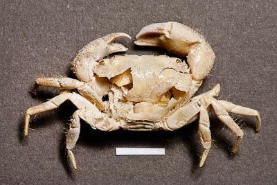 краб. Eriphia sp., Eriphiidae (exuvium). Классификация: Членистоногие Arthropoda, Ракообразные Crustacea, краб, Eriphiidae, Eriphia sp.