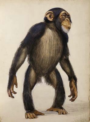 Шимпанзе Иони стоя. Рисунок