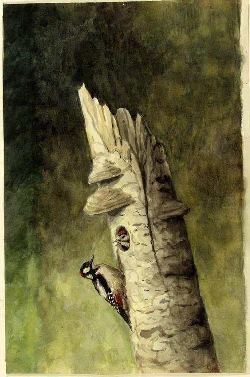 Дятел в дупле. Рисунок
