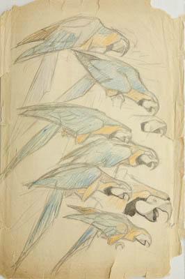Попугай красно-синий ара (на листе 8 набросков). Рисунок