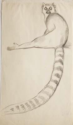 Лемур кошачий, сидя. Рисунок