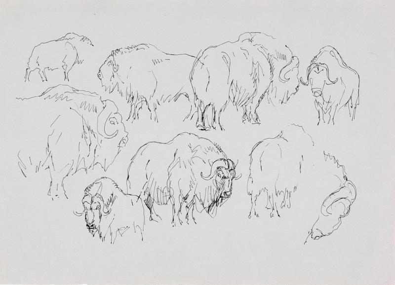 Наброски овцебыка. Рисунок