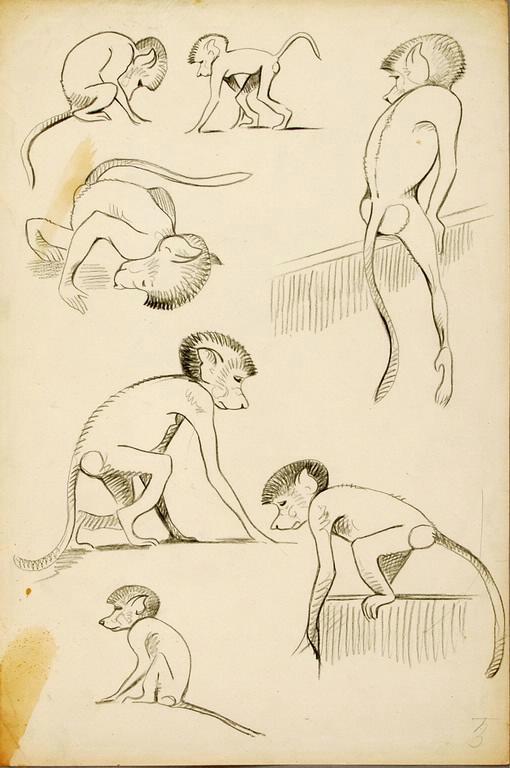 Наброски месячного гамадрила. Рисунок