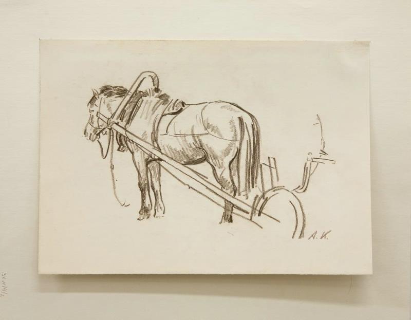Лошадь, запряженная в телегу. Рисунок