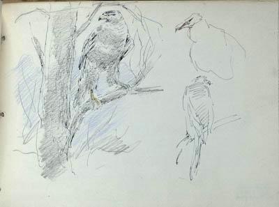 Наброски ястреба-тетеревятника, бородоча, коршуна. Лист из альбома