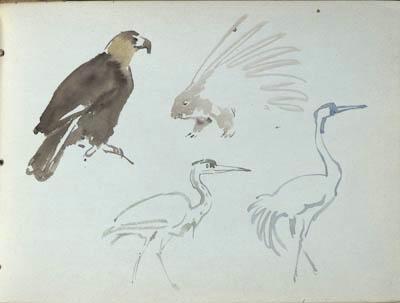 Наброски орла, дикообраза, журавля и цапли. Лист из альбома