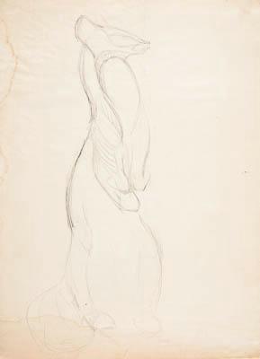 Изображение полупрофиля куницы, стоящей о двух конечностях (голова смотрит вправо). Эскиз к скульптуре "Куница" из собрания ГДМ (ОФ 10076 - майолика, 1959)